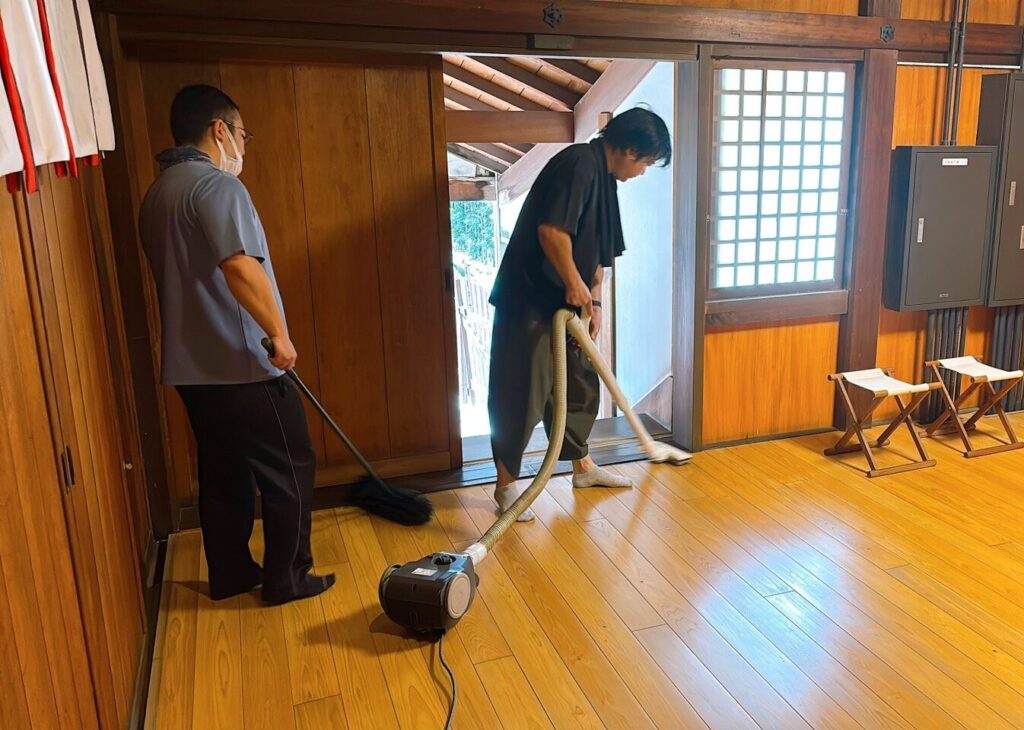 地域交流の一環として近隣神社の境内の清掃・雑務を行います。