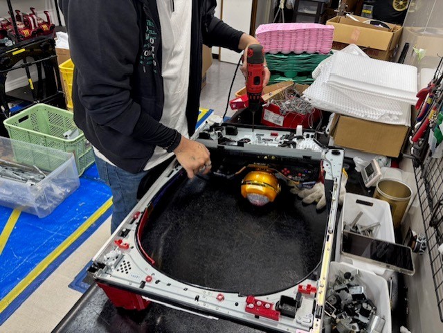 提携業者から預かった遊戯体(パチンコ台)を解体し、リサイクル品として指定業者に納品します。